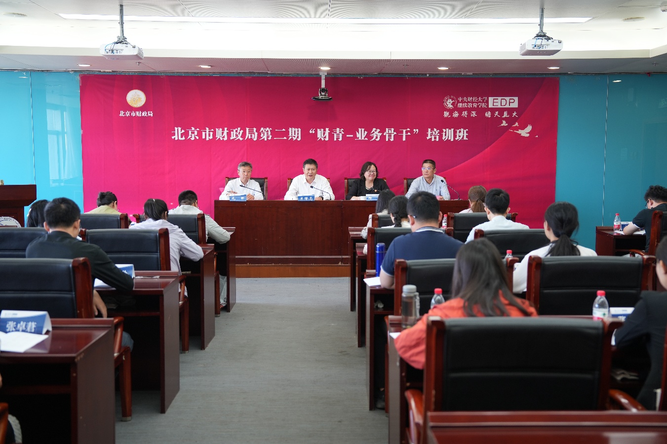 9月19日下午,北京市财政局第二期“财青—业务骨干”培训班在我校学院南路校区正式开班。30名财政局优秀青年业务骨干满怀热情参加培训。北京市财政局党组成员、副局长关得志,中央财经大学党委副书记杨莹出席开班仪式。仪式由中央财经大学继续教育学院院长蔡如海主持,北京市财政局人事教育处处长毛昕同志宣读了学员分组及班委人选名单。班长许朝军同志代表全体学员做了表态发言。